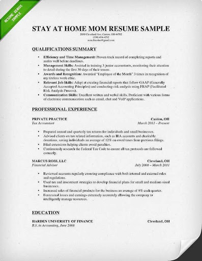 Stay At Home Mom Resume Example Rg Resume Writing Examples Resume Examples Learn Internet Marketing |
